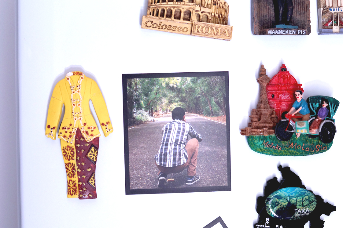 Ah les magnets, c’est toute une histoire chez nous. Déjà toute petite, j’ai pris l’habitude de collectionner un peu tout et n’importe quoi : magnets, autocollants, pin’s, badges, gommes (oui des gommes de toutes les formes et couleurs !) cartes postales, timbres mais il a bien fallu arrêter surtout qu’en grandissant, je n’y trouvais plus un intérêt particulier. En fait, cet intérêt je le trouve aujourd’hui lorsque j’associe à l’une des ces pièces une valeur sentimentale. Cela se traduit par des achats de magnets et de cartes postales à chacun de nos voyages. Mais on ne va pas se leurrer, les plus jolis souvenirs de voyage sont nos photos alors pourquoi ne pas les mettre en avant ?